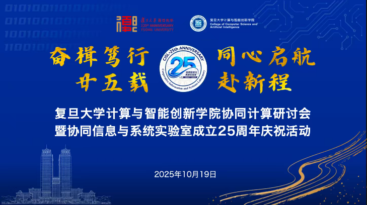2025年10月19日,金秋时节,复旦大学计算与智能创新学院协同信息与系统实验室迎来协同计算研讨会暨实验室成立25周年庆祝活动。历届校友与师生齐聚一堂,共同回顾实验室成长历程,展望未来发展,用一场满载回忆与憧憬的盛会,为实验室25载征程写下温暖注脚。