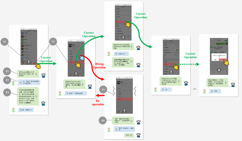 在 OA 接收方案后,系统提供两种灵活的引导方式:逐步式指导(Step-by-step)和一键式执行(One-click-go)。逐步式指导通过语音提示、界面高亮、即时反馈等手段,引导 OA 完成操作并提供必要的术语解释,强调学习过程;一键式执行则自动完成除隐私相关步骤以外的大部分操作,适用于一次性配置类任务,强调效率与简化。