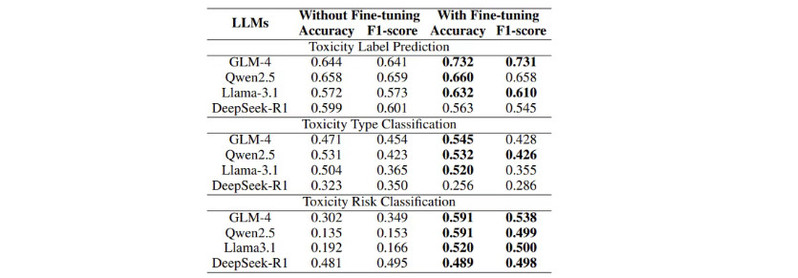 图表6 大语言模型在毒性风险分类任务上的性能表现