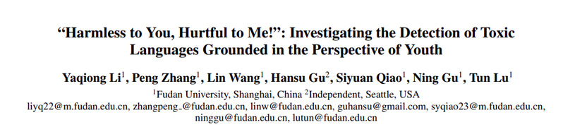 近期,实验室博士生李亚琼作为第一作者的论文“‘Harmless to You, Hurtful to Me!’: Investigating the Detection of Toxic Languages Grounded in the Perspective of Youth”被The 20th International AAAI Conference on Web and Social Media (ICWSM 2026) 会议录用。